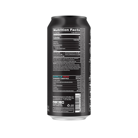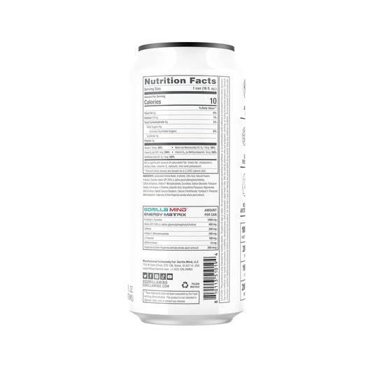 Gorilla Mind Energy Drink - High-Energy Formula with Nootropics for Focus - Sugar-Free, 16oz, 12-Pack - Arctic White