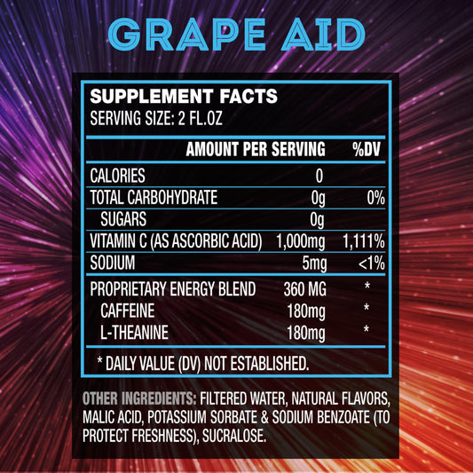 Trap Fuel Grape Aid Energy Drink - Zero Calorie Hydration Boost for Active Lifestyles - Performance Enhancing Formula - 5 Hour Energy Extra Strength - 02oz Single Pack