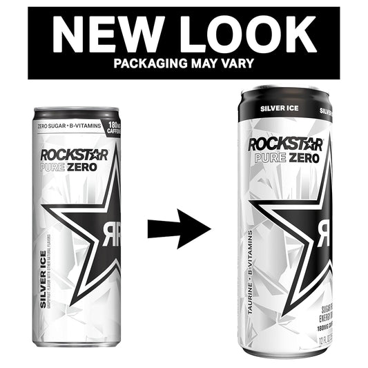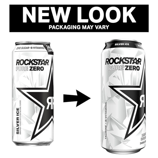 Rockstar Energy Drink Pure Zero Silver Ice 12oz Sleek Cans 8-Pack - Buy Online Now