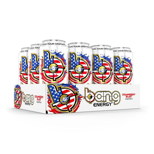 Sugar-Free Bang Energy Drink, Strawberry Blast Flavor, 16 oz Cans, 24 Pack