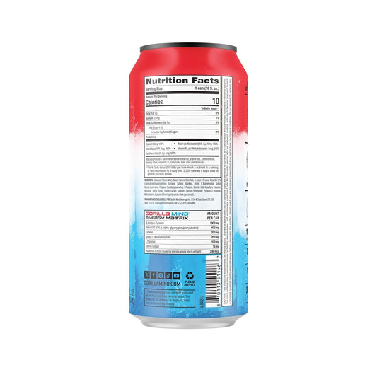 Gorilla Mind Energy Drink 12-Pack Bombsicle Flavor - Boost Energy and Focus with N-Acetyl-L-Tyrosine, Alpha-GPC, 200mg Caffeine, Uridine, and Saffron - No Sugar or Artificial Colors - 16oz Cans