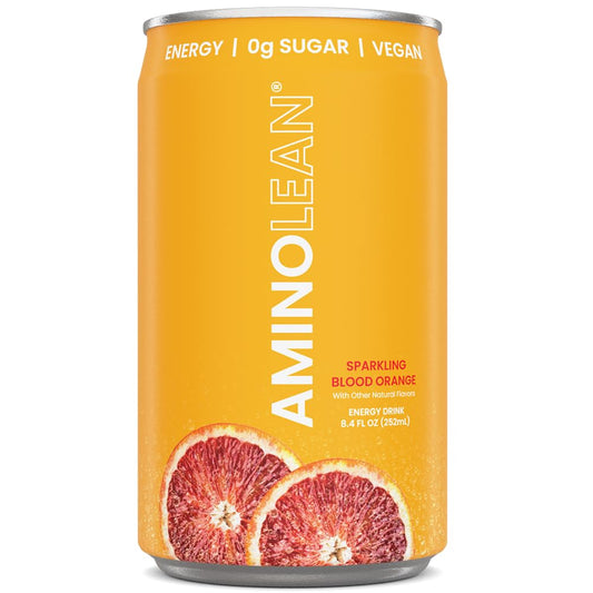 AminoLean Energy Drink MINIS 12 Pack - Sugar Free Natural Caffeine & Vegan Amino Acids for Anytime Energy, No Jitters, Blood Orange Flavor