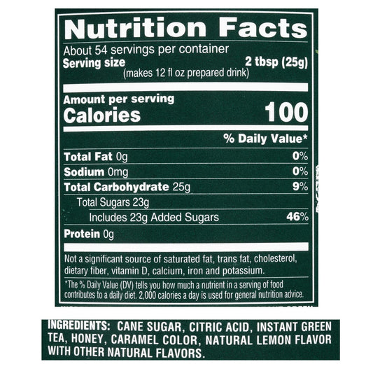 Green Tea Powdered Drink Mix - Family Size Cannister, 20 Quarts, 47.2 Ounce Pack of 5 - Refreshing & Thirst-Quenching Flavor