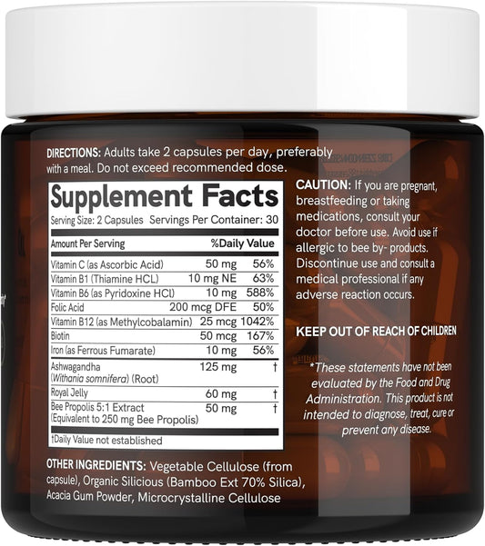 Dr Sosnowski's Bee Fuelled Daily Energy Supplement - Boost Mental & Physical Energy, Support Metabolism, Fight Fatigue - 60 Vegetable Capsules