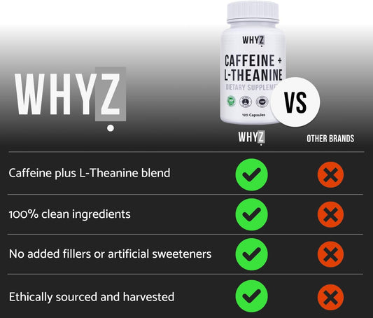 120 Capsules of WHYZ Caffeine Pills with L-Theanine for Sustained Energy and Focus - Nootropic Stack Energy Vitamins for Cognitive Function - Energy Supplements for Women and Men