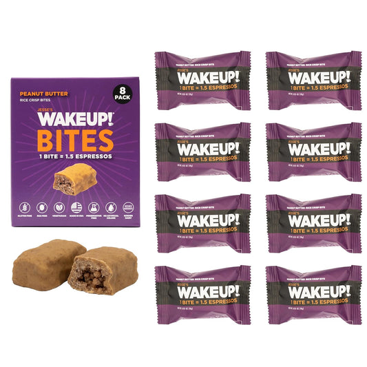 Caffeinated Peanut Butter Protein Bites - Gluten Free & Vegetarian Energy Snack with 175mg Caffeine - Boosts Focus & Clarity - Kosher - 8 Pack