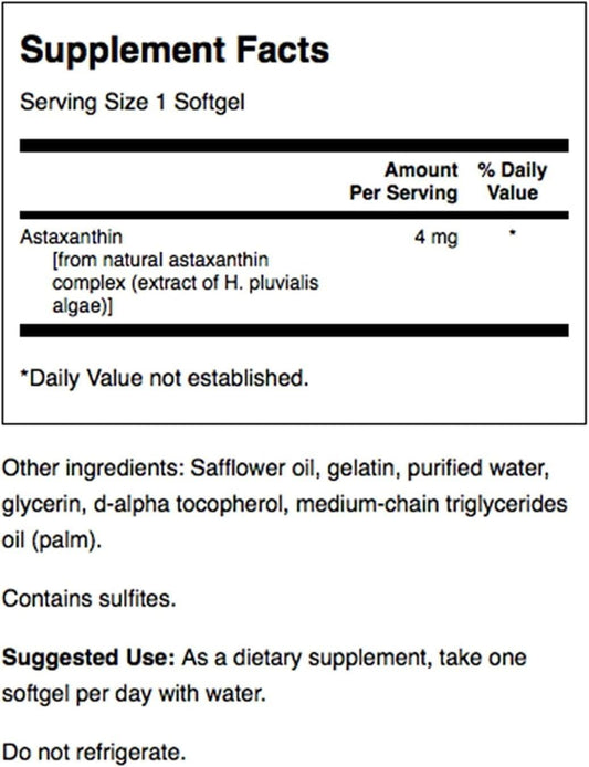 Astaxanthin 4mg Supplement for Eye, Brain, Skin Health - Antioxidant Support Softgels - 60 Count