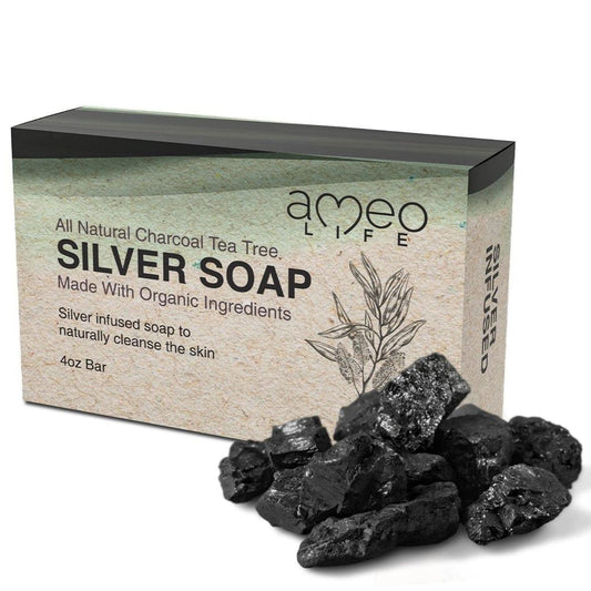 Ameo Life Charcoal Tea Tree Silver Soap - 4 oz Colloidal Silver Bar for Skin Cleansing - Women and Men's Natural Soap