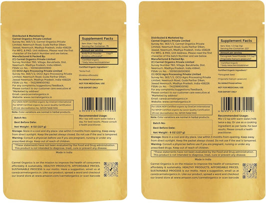 Organic Amla and Fenugreek Powder Combo - 8 Ounce Each | USDA Certified, Non-GMO, No Preservatives | Carmel Organics