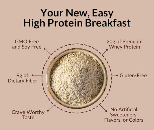 Chocolate Peanut Butter Banana Whey Protein Overnight Oats - Gluten-Free Instant Breakfast Shake with High Protein and Fiber, Non-GMO - 12 Servings