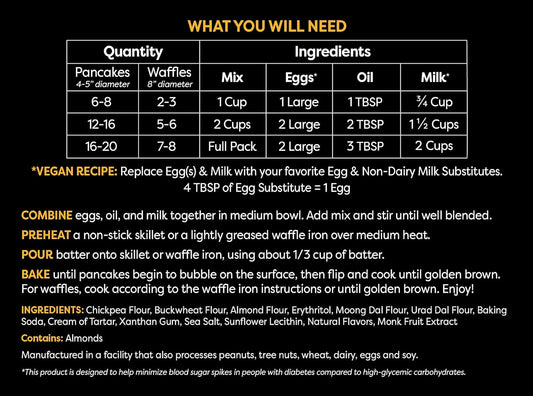 Diabetic Friendly Pancake & Waffle Mix | High Protein & Fiber, Low Glycemic, Gluten-Free | No Sugar, Dairy, Plant-Based with Monk Fruit Sweetener