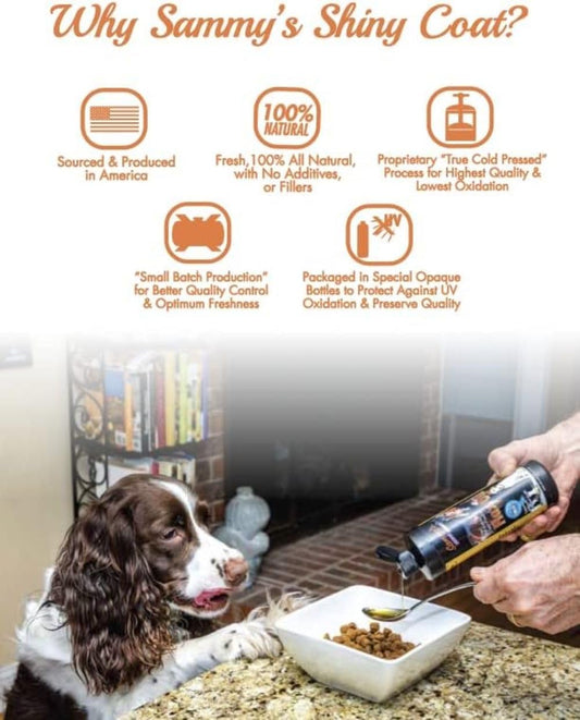 Sammy’s™ Shiny Coat Flaxseed Oil Supplement for Pets - 16 oz Liquid Formula with Omega-3 Fatty Acids for Dogs, Cats, and Other Animals