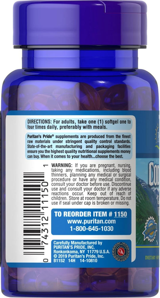 Pure and Potent Cod Liver Oil Capsules - 415 mg Omega-3 Fatty Acids - Essential for Heart Health and Joint Support