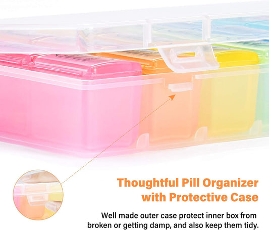 Clear 7 Day Pill Organizer 3 Times a Day for Vitamins, Fish Oils, Supplements - GOGOODA Weekly Pill Holder Box