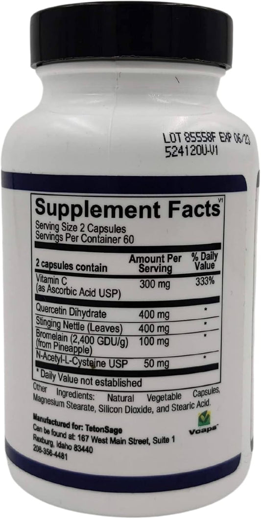 Immune Balance Support Supplement with Vitamin C, Quercetin, Stinging Nettle, and Bromelain - 120 Capsules