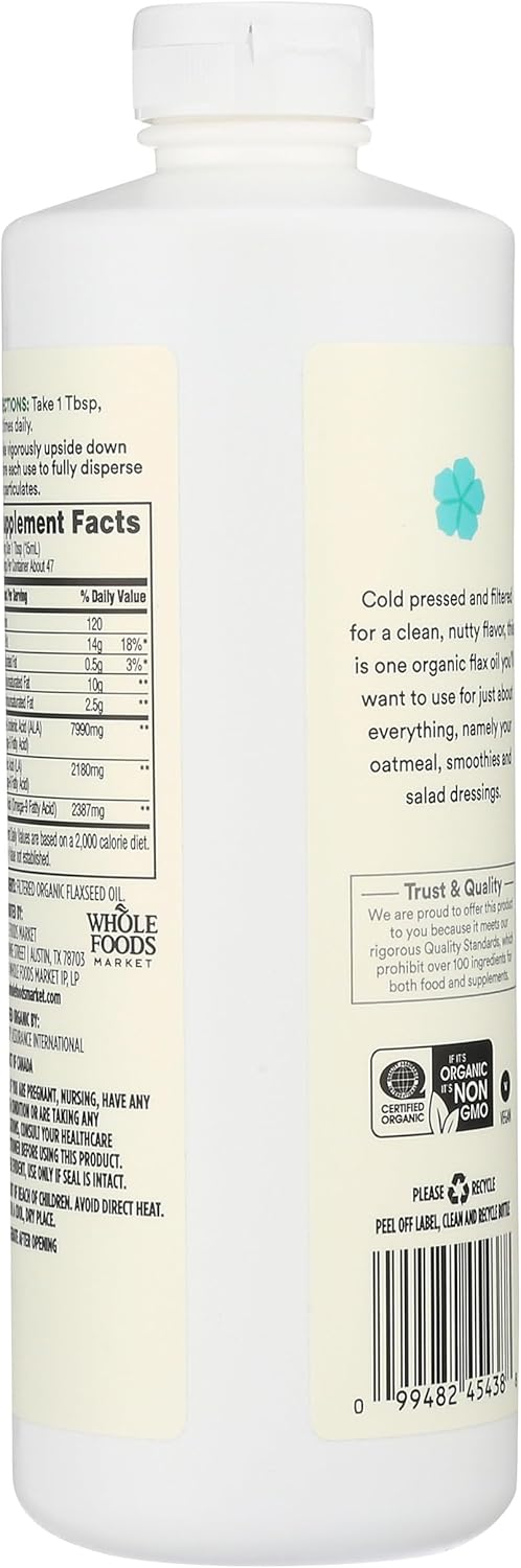 Whole Foods Market 365 Organic Flax Oil, 24 fl oz - Filtered and Pure