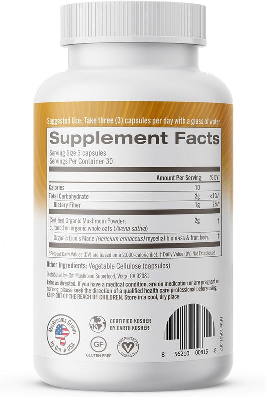 90-Count Lion's Mane Mushroom Capsules for Memory, Focus & Immune Support - Nootropic Supplement with Fruit Body & Mycelium - 30 Day Supply
