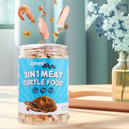 BNYEE 3 in 1 Freeze Dried Turtle Food - Chicken, Duck, Fish Meat Treats (8 oz) - Natural Human-Grade Formula