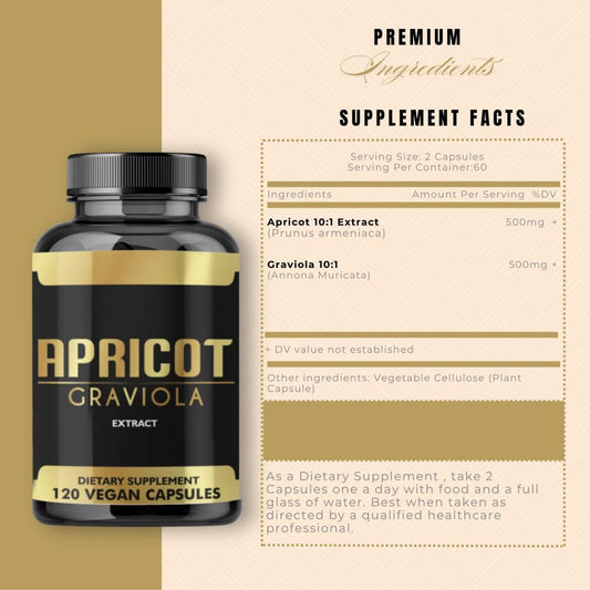 Apricot Soursop Graviola Capsules 10:1 Extract 1000mg (120 Count) - High Quality Dietary Supplement