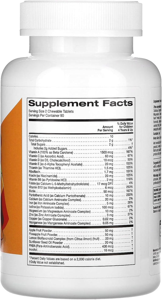 Children's Chewable Multi-Vitamin with Assorted Fruit Flavors - 180 Vegetarian Tablets by California Gold Nutrition