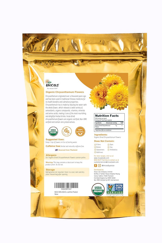 Asiya Life INCAS 100% USDA Organic Chrysanthemum Tea - Non GMO, Caffeine-Free, Gluten-Free, Vegan, Rich in Antioxidants - 3.53 oz (100 g) - Sourced from Thailand