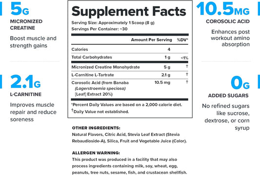 All Natural Post Workout Supplement with Micronized Creatine Monohydrate - Fruit Punch Flavor, 30 Servings