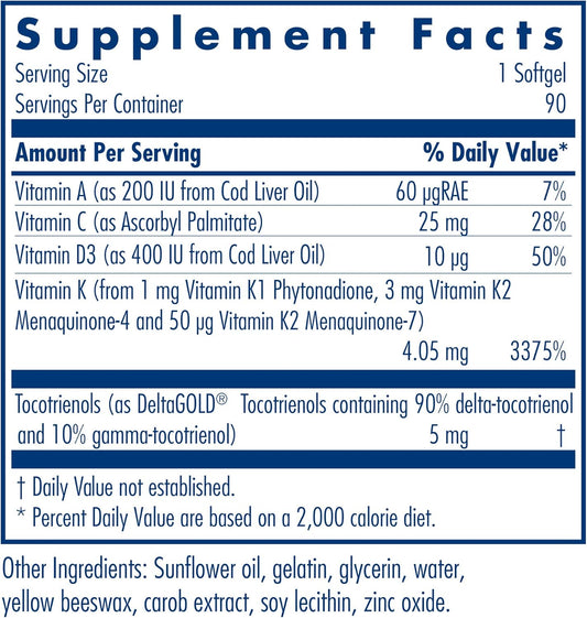 Allergy Research Group Full Spectrum Vitamin K Supplement - K1 and K2 Complex with D3 and A - 90 Count Bottle