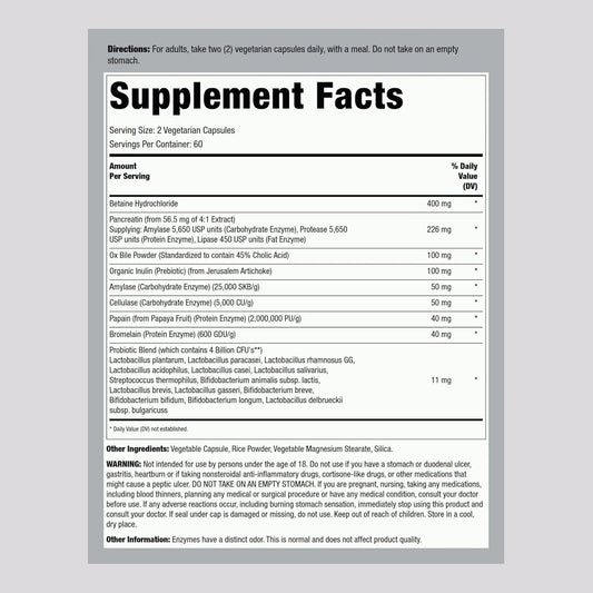 Digestive Enzyme Supplement with Pancreatin and Betain Hydrochloride - 120 Capsules