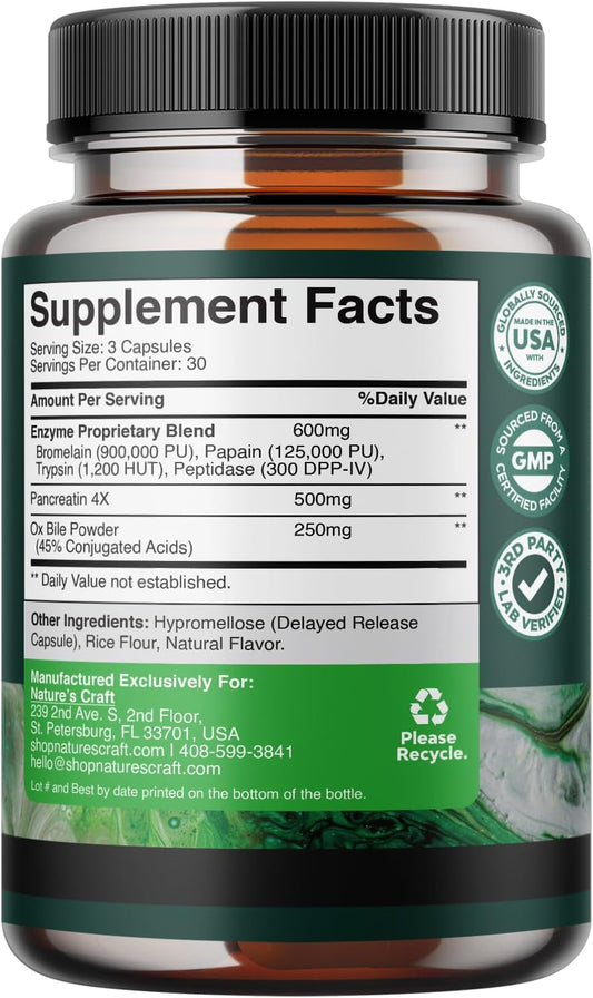 Digestive Enzymes with Ox Bile Salts for Gallbladder & Pancreas Support - Pancreatin 4X, Trypsin & Bromelain Blend - 1 Month Supply