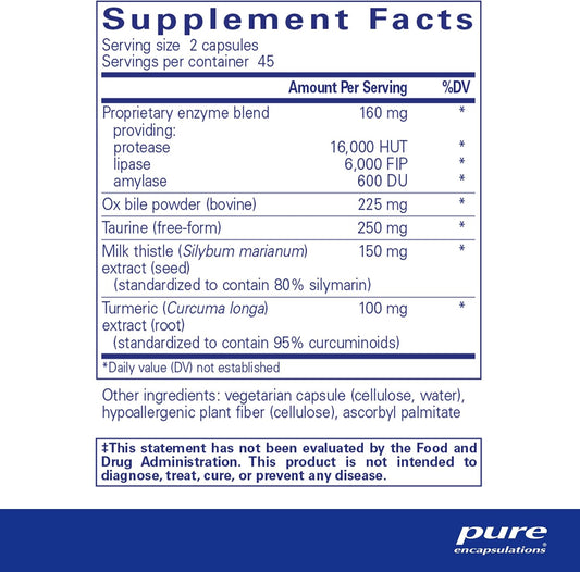 Digestive Enzyme Supplement for Gallbladder Support - Pure Encapsulations Digestion GB - with Bile Salts & Digestive Enzymes - Gluten Free & Non-GMO - 90 Capsules