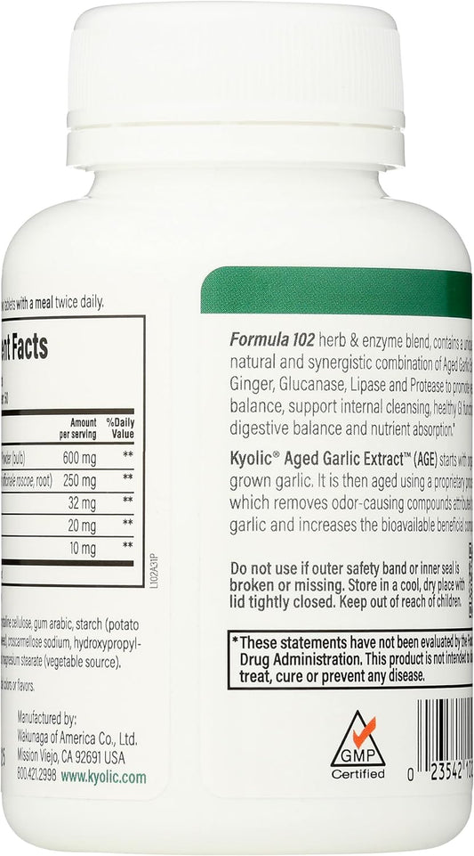 Kyolic Garlic Supplement with Enzymes - Vegetarian Tablets (100 Count)