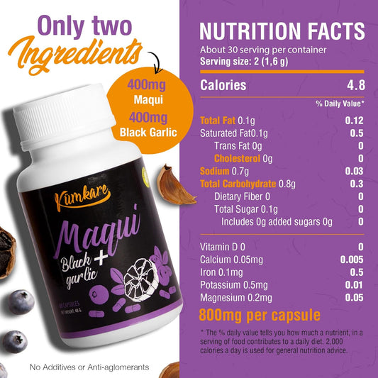Immune Support Supplement with Vitamins C, Zinc, and Antioxidants for Adults - Maqui Berry and Black Garlic - 60 Capsules