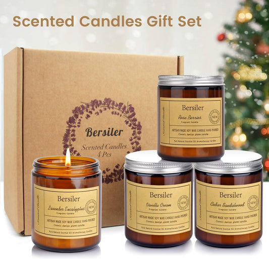 4-Pack Scented Soy Candles Gift Set for Women - Aromatherapy Candle for Stress Relief and Relaxation - Ideal Christmas, Birthday, Valentine's Day Present - 28 oz Each