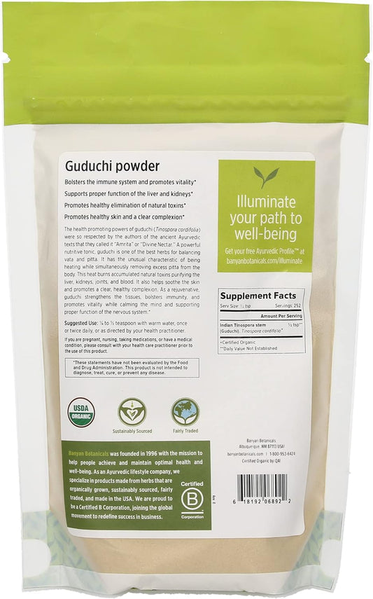 Organic Guduchi Powder for Immune Health, Detox & Digestion - 3.5 oz Vegan Supplement from Banyan Botanicals