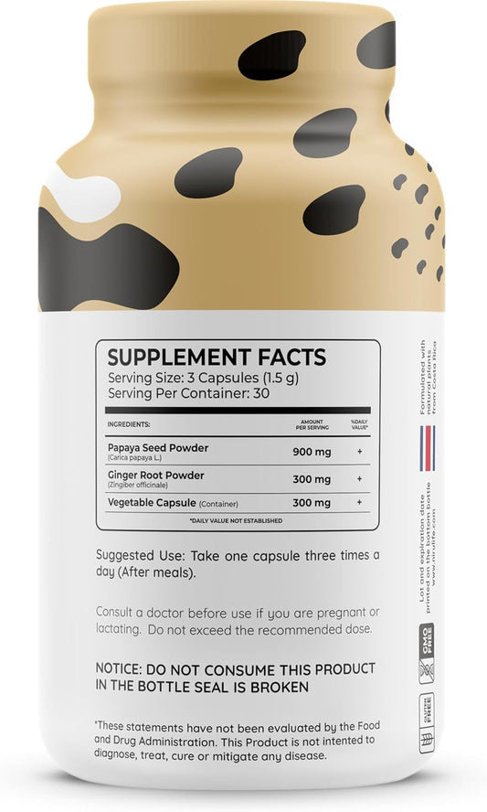 Single Origin Papaya Ginger Capsules for Digestive Support, Detox, & Metabolism Boost - 90ct 500mg Caps - Niru Life