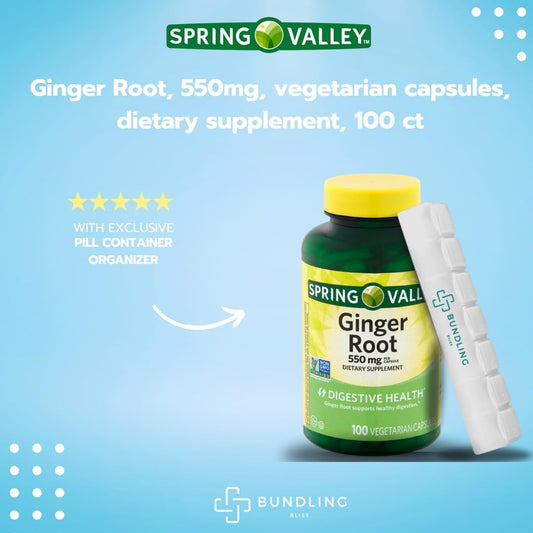 Spring Valley Ginger Root 550mg Capsules with 7 Day Pill Organizer - 100 Count Dietary Supplement Pack
