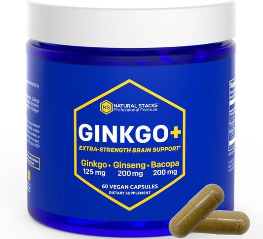 Ginkgo Biloba and Dopamine Brain Food Bundle - Focus Support Supplements - 120 Capsules - Natural Stacks