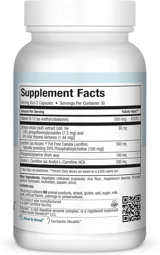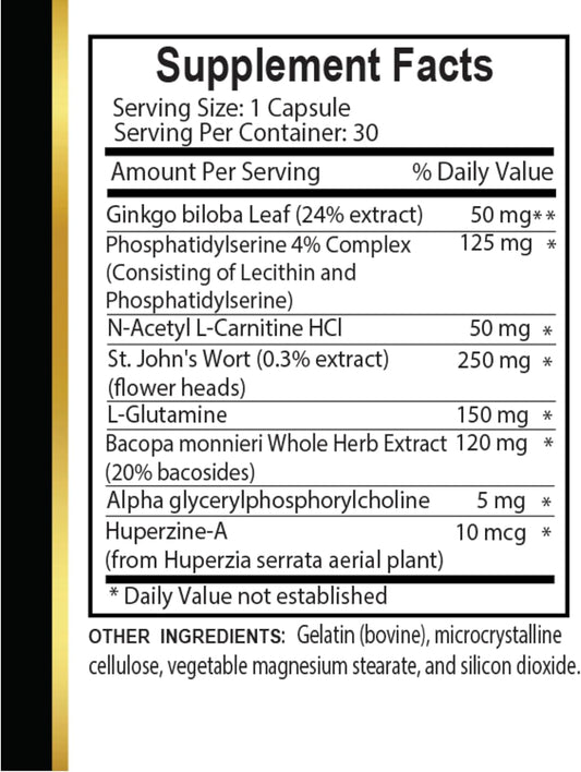 Brain and Memory Support Supplement - Enhance Neural Function, Focus, and Concentration - 60 Capsules