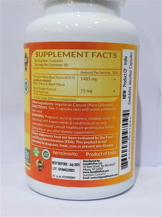 Premium GoodlifePick Peruvian Maca Root Capsules - 150 ct - Red, Yellow, Black Maca Extract - Non-GMO, Vegan - No Fillers