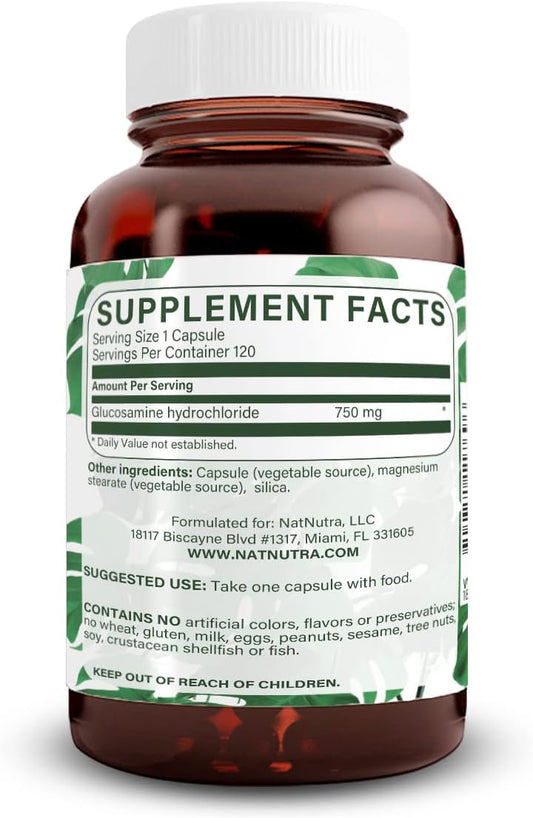 Plant-Based Glucosamine Hydrochloride Supplement for Joint Health, 750mg, 120 Capsules - Vegan, Kosher, Shellfish Free Formula for Men & Women