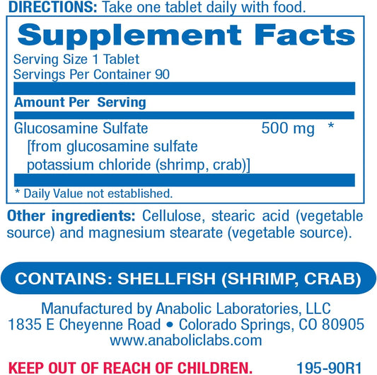 Anabolic Laboratories Glucosamine Sulfate Supplements - 90 Capsules for Joint Health and Cartilage Support in Men and Women