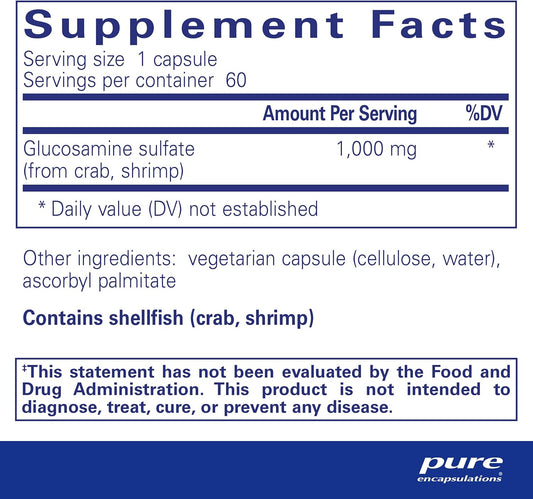 Pure Encapsulations Glucosamine Sulfate 1,000 mg Capsules for Joint Support and Mobility, Cartilage Health, Connective Tissue - 60 Count