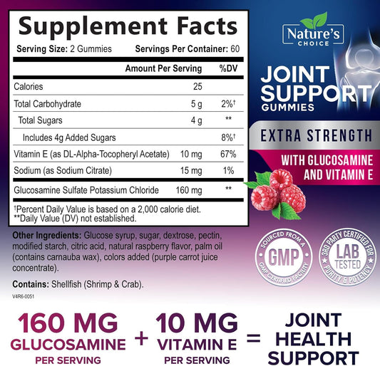 Extra Strength Glucosamine Gummy Supplement with Vitamin E for Joint Support - 120 Gummies - Natural Cartilage & Flexibility Support Chew