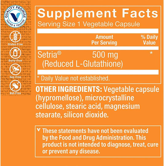 500MG Reduced Glutathione Capsules - Antioxidant Supplement for Immune & Cellular Health - 60 Count