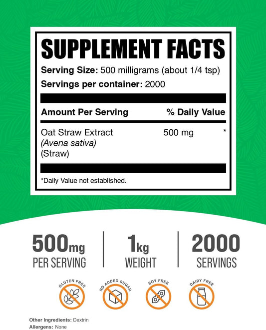 1kg Wild Oats Powder - Gluten Free Oat Straw Extract - Avena Sativa Supplement - 500mg Oat Seeds Extract - Herbal Powder Supplement