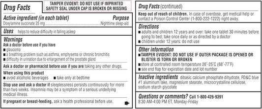 96 Tablets of Kirkland Signature Nighttime Sleep Aid with Doxylamine Succinate 25mg - Pack of 4