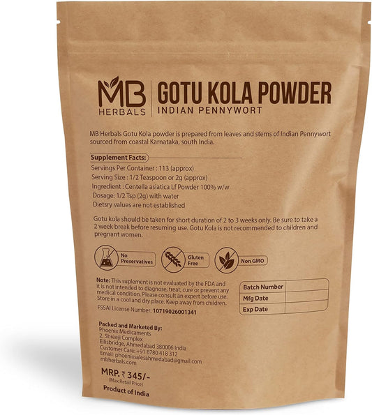 Organic Gotu Kola Powder 227g - Centella asiatica Mandukaparni - Hair Care for Growth and Strength - MB Herbals
