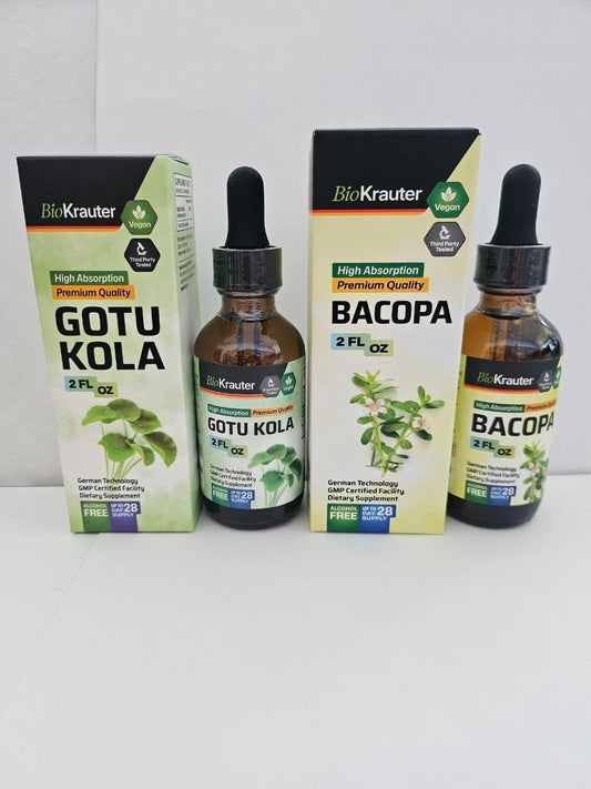 Gotu Kola and Bacopa Herbal Tincture Bundle - 2 Fl. Oz. Each - BIO KRAUTER
