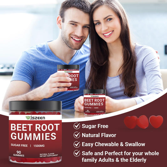 Cherry Flavored Beet Root Gummies with Grape Seed Extract for Energy & Blood Pressure Support - 60 Gummies, Sugar-Free Nitric Oxide Supplements for Men & Women