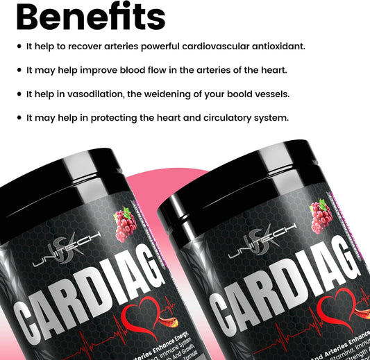 USK Unitech Cardiag Grape Powder | Natural Supplement with L-Arginine, L-Citrulline, Grape Seed Extract, Resveratrol, Coenzyme Q10 | Grape Flavor | 16 oz